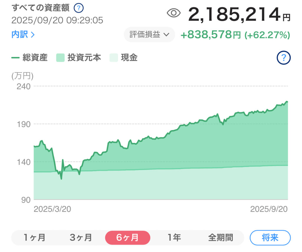 右肩上がりが安定して続くわけがない。ただ、こういう状態を眺めて「記録」しておくと、投資をしていくうえでのモチベーションにはなる。投資の世界は楽しくも難しい。その荒波に立ち向かうのはモチベーション、つまり記録を続けることなのではないだろうか。