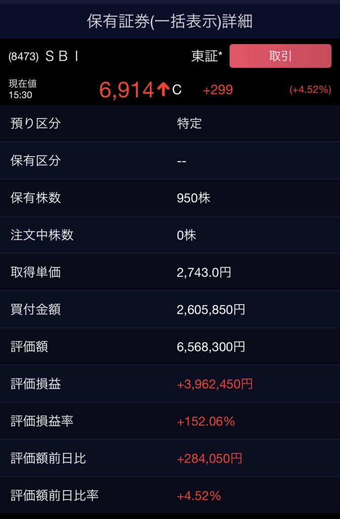 特定の企業(=個別株)を買うことはほとんどしないのだが、このSBIホールディングスだけは昔からずっと保有している。企業から発信されるメッセージを見ていて、共感することが多く純粋に好きだからだ。応援している企業が成長して、市場からも評価されていく。自分は配当金をもらいながら、その様子を眺めている。うんびゃく万円という含み益は精神的な安定ももたらしてくれるし、良いことばかりなのである。